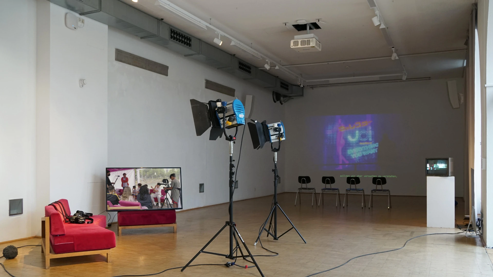 The artistic PhD project Making Public Space explores the potential of time-based media to create places for discussion in urban spaces in order to encourage city dwellers to engage with the design of their cities. Topics such as gentrification, the search for free spaces and our coexistence with non-human city dwellers are addressed directly at the places in the urban space where they occur. The experiments carried out as part of the research process include collaborative filming, large projections in urban space, interactive sculptures and reflective video works. The exhibition offers an insight into the realized works and makes the research process tangible.